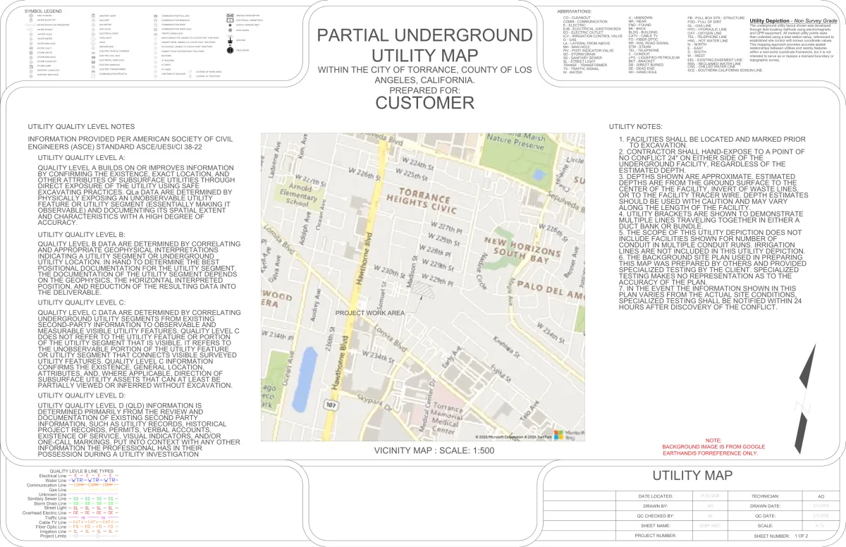 I create utility mapping deliverables and as-built drawings from your survey data. Clean layers, proper symbology, and formats that actually work for engineers and municipalities.